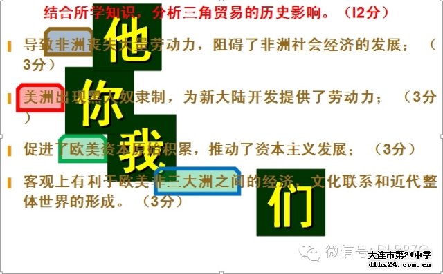 4.客觀上有利于歐美非三大洲之間的經濟,文化聯系和近代整體世界的形成。 (3分)