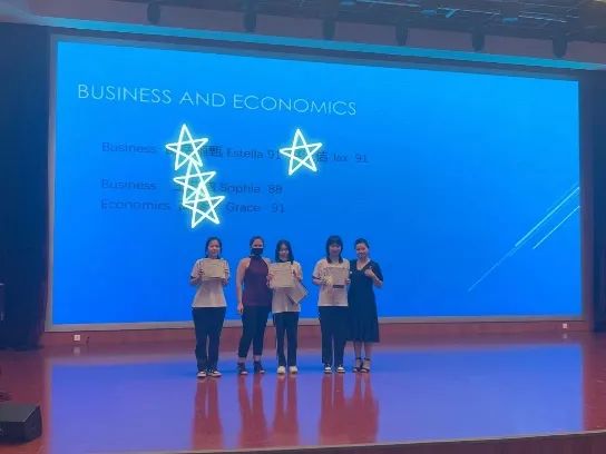 商業和經濟老師們和受表彰的同學們合影